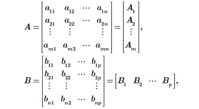 设 是 矩阵, 是 矩阵, 分块为 分块矩阵和 分块为 分块,且 的列分块法和 的行分块法完全相同,则